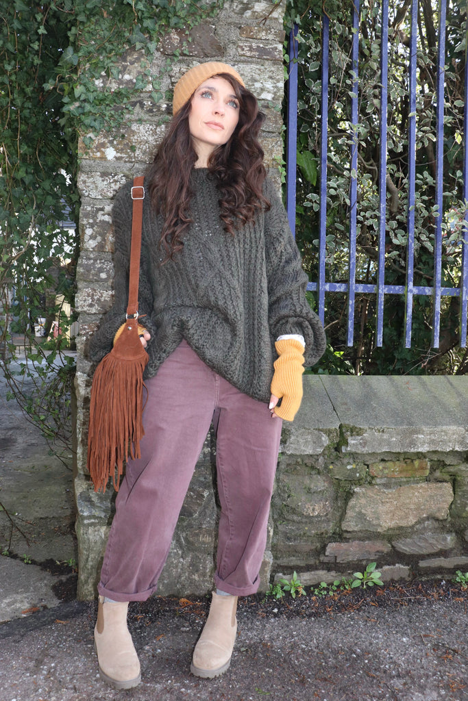 Moss green cable knit jumper