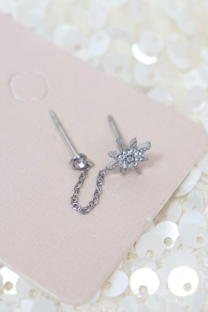 Star chain earring (Silver)