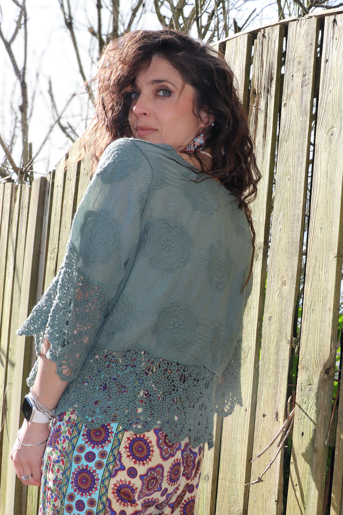 Khaki crochet trim blouse