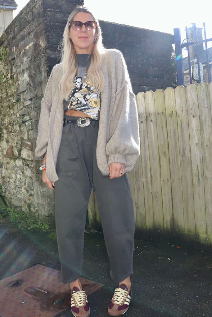 Oversized beige wool cardigan