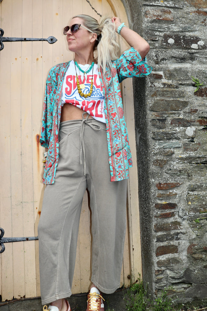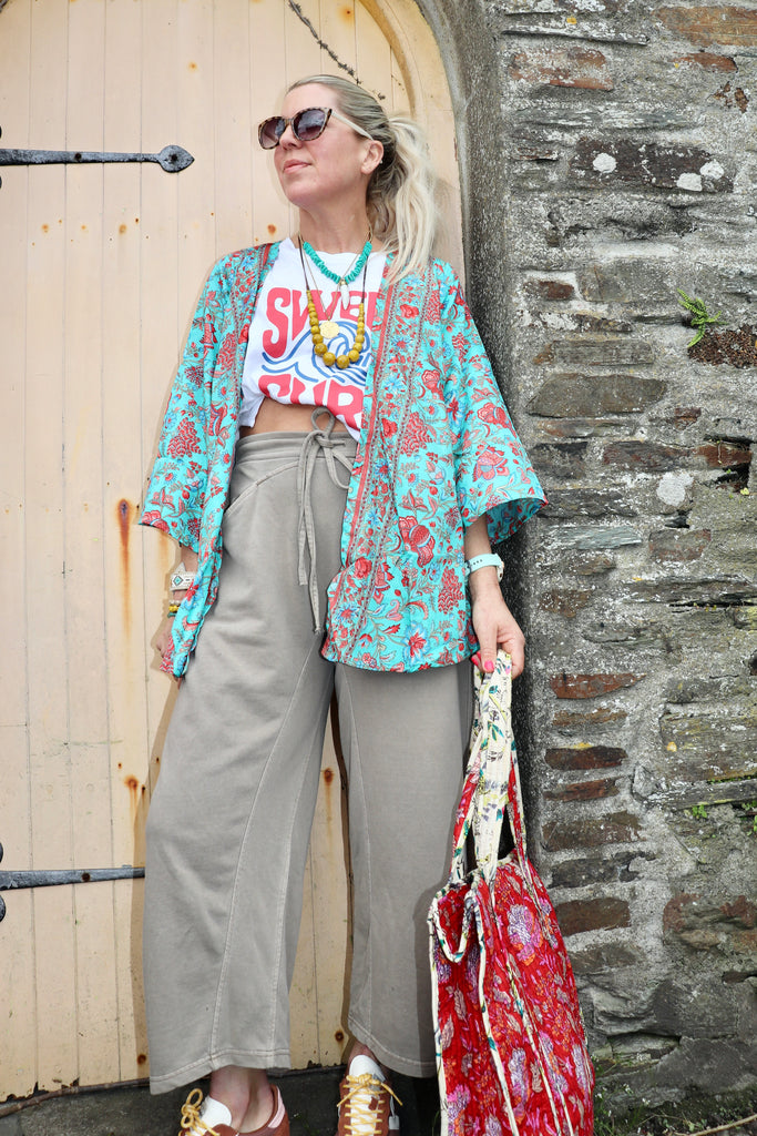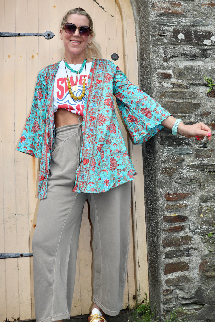 Turquoise floral kimono