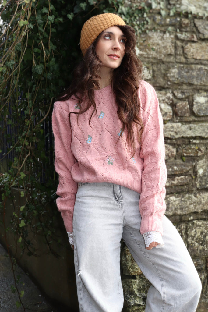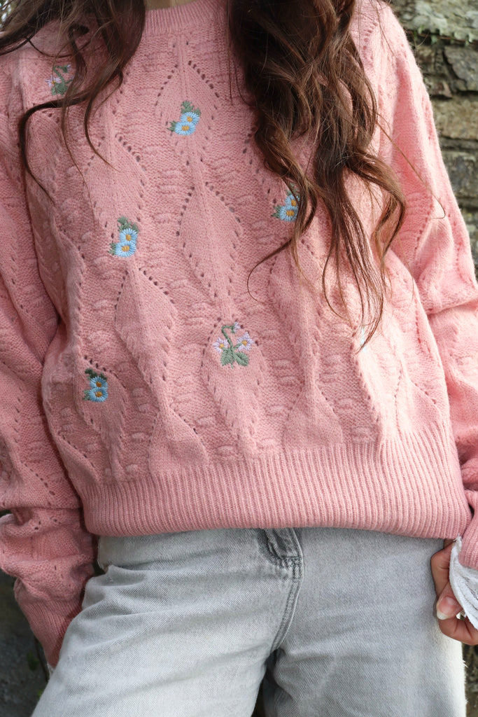 Floral embroidered pink jumper