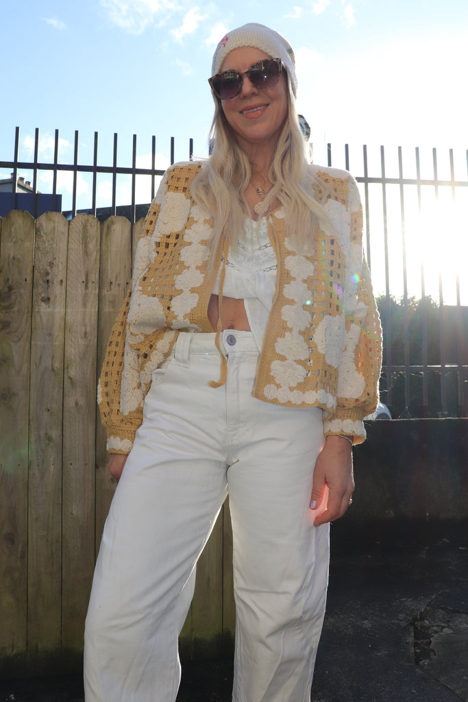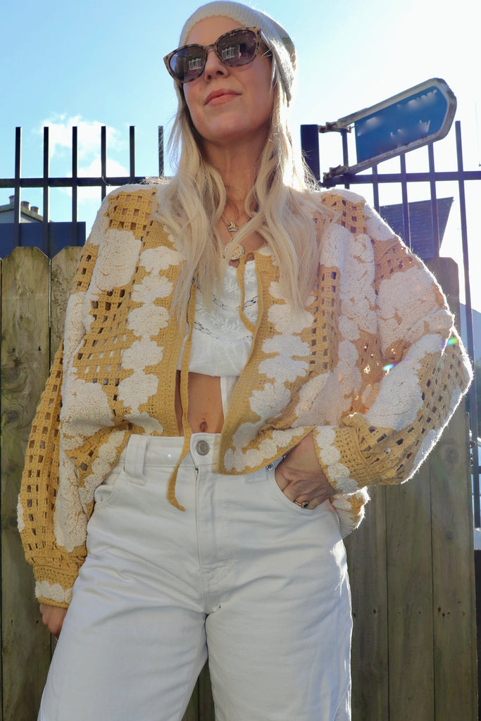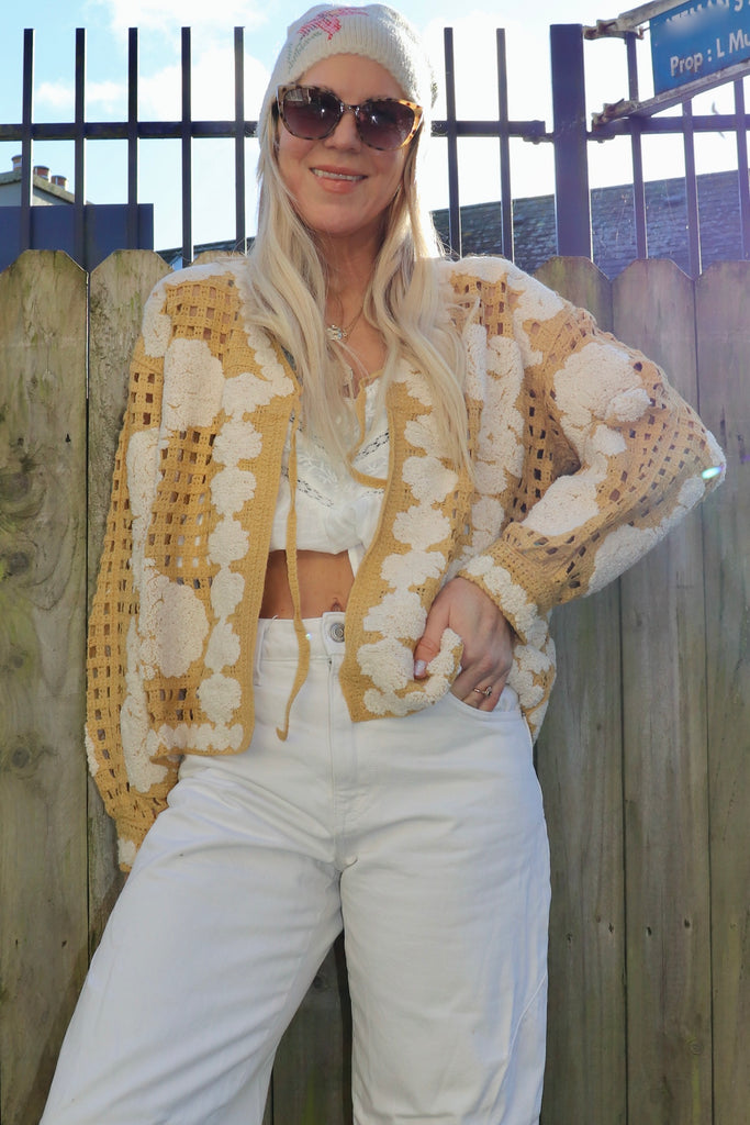 Floral mustard crochet cardigan